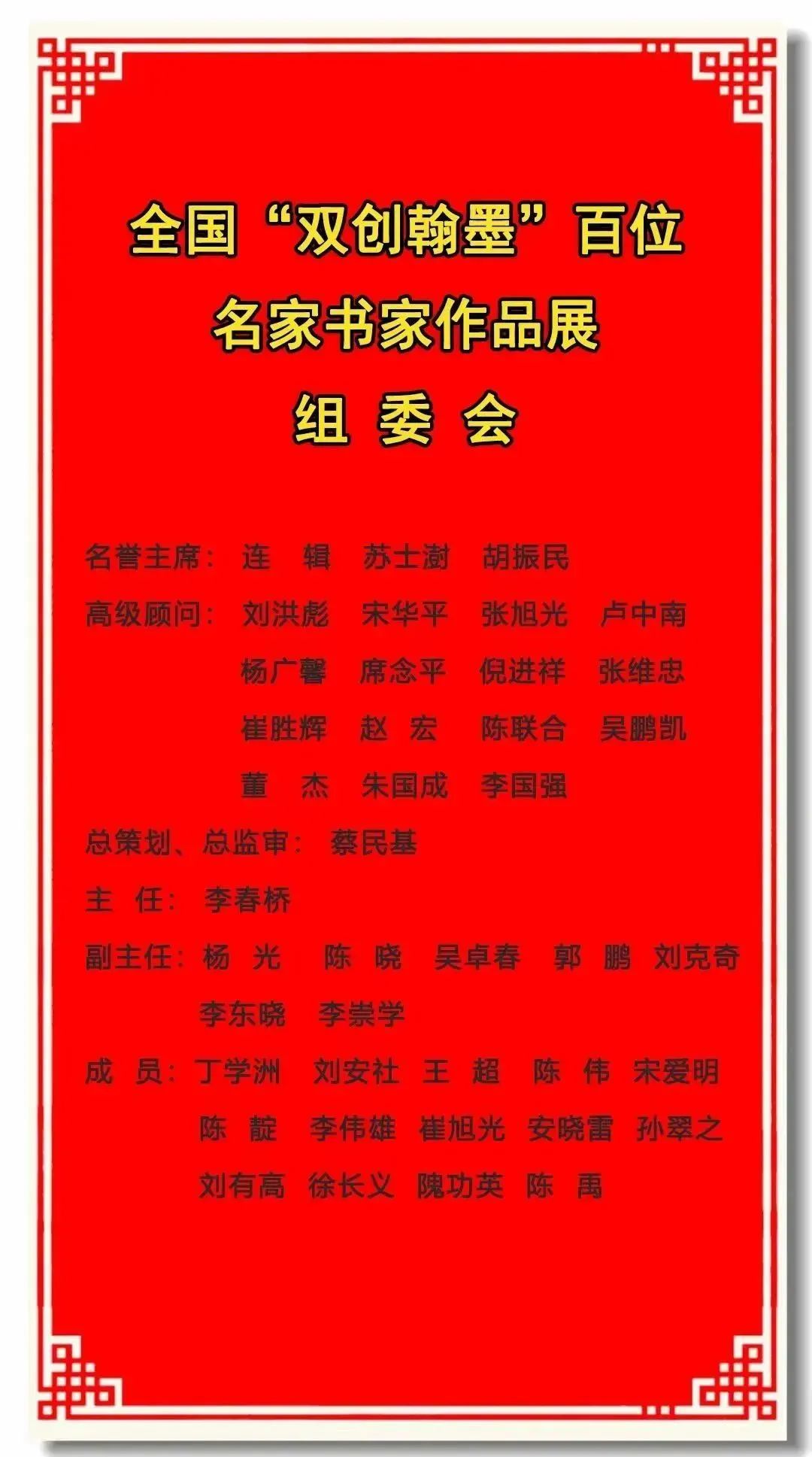 新时代、新征程,新要求、新使命。为深入学习贯彻党的二十大报告中“推进文化自信自强、铸就社会主义文化新辉煌”的战略部署,带头贯彻落实弘扬中华优秀传统文化要“创造性转化、创新性发展”的时代要求,由中国人才研究会书画专业委员会、中国语文报刊协会规范汉字书写专业委员会、中国通俗文艺研究会榜书艺术委员会共同主办,由中国通俗文艺研究会榜书教育培训中心、全国书法培训教师考试中心培训基地、庐山白鹿洞书院国学院共同承办的本次线上公益书法展隆重上线,以此作为新年贺礼奉献给大家。近些年来,在国家开放大学、中国残联和国家关工委有关部门、中国通俗文艺研究会榜书艺术委员会等有关协会、社会各界爱心人士的关心支持下,由中国教育发展战略学会传统文化教育专业委员会理事、中国社会艺术协会榜书艺术委员会原党组书记兼副会长、国家开放大学书法学院原院长蔡民基领衔指导的书法教学团队,坚持以新时代中国特色社会主义文艺思想为根本指导,以“创造性转化书法艺术成果、创新性发展书法教育事业”为方向、目标和着力点,勇于探索、砥砺前行、赤诚奉献,通过倡导新理念、创建新模式、探索新路子、推广新教法和新技法,助力了一大批复合型书法艺术和书法教育骨干人才成长发展,这次展览集中展示了一批优秀学员——各地名家书家的艺术成果,也预示出书法创作书体融合嬗变新趋势。本次展览的作品经过评委会严格把关评审,共有226位作者的603幅作品、分三个板块(四个专辑)展示:一是特邀多年来关心支持双创书法教育的领导名家作品(专辑1);二是积极参与“书苑点睛”“新书苑”等历期高研班和“双创翰墨大讲堂”等教学的名家导师教师作品(专辑2);三是以历期高研班部分骨干学员为主的名家书家作品(专辑3、4)。这些作品中,既有学习贯彻二十大精神的内容,也有专门展示中华优秀传统经典书法艺术的内容,各具特色,异彩纷呈,供大家欣赏。由于我们条件有限,展览中不尽人意之处,望书道同仁海涵,并多提宝贵意见。真诚感谢各位领导、导师和全国各地名家书家的积极参与!真诚感谢各个主办单位给予的大力支持!“双创翰墨”百位名家书家作品展组委会