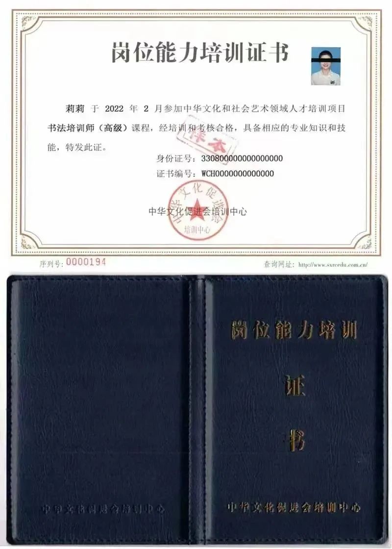 2.对接师资考级。以研代训,研修期间组织学员自愿报名参加文旅部中华文化促进会培训中心“全国书法培训教师岗位能力等级(初级、中级、高级)考试”(详见《全国书法教师报考指南》),由“全国书法培训教师考试中心”统一组织阅卷评审,合格者可获得由中华文化促进会培训中心盖章颁发的《岗位能力培训证书—(书法培训教师初级、中级、高级)》,有关学员可在中华文化促进会官方网站“人才数据库”中进行查询。