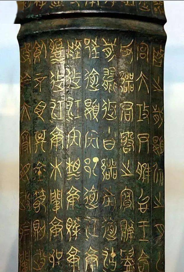 此“金节”用铜铸成,因形似劈开的竹节,故名“节”。这种“车节”和“舟节”,迄今为止仅此一见,因而极为珍贵。为防奸杜伪,在镶嵌工艺的基础上进行“错金银”再创作,故又称《错金鄂君启金节》。错金银也叫“金银错”,其方法是在青铜器铸造时铸出腰槽,将金银片、丝放入槽内,锤打后错实磨平。这一工艺是在春秋时期产生的,应用至今。《鄂君启节》铭文挺拔秀丽,圆润秀劲,庄严肃穆是错金铭文中的精品。