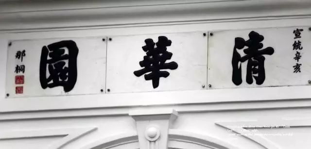 “清华园”题字作于那桐宣统三年(1911年)。1966年8月24日,这座历史悠久的“二校门”被“清华大学红卫兵”当作“四旧”推倒、砸毁;20年后,在清华广大教职工和海内外校友的强烈要求下,学校决定在原址重建清华“二校门”,在清华校友的捐助下,“清华园”牌楼才得以在原址恢复原貌。那桐题写的“清华园”三字即上下款,是根据照片复制的。