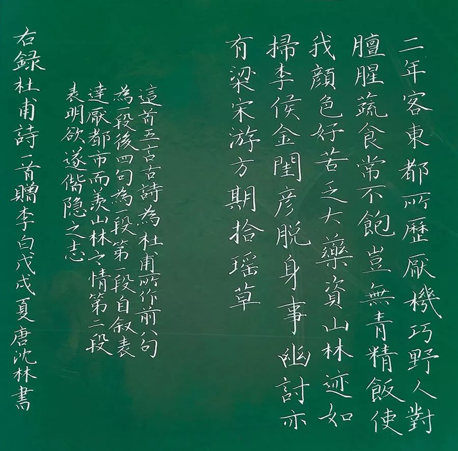进行粉笔字练习应从临写优秀的碑帖(碑:石刻、木刻等字的拓印件;帖:直接书写的范本。)开始,且首先临写楷体。