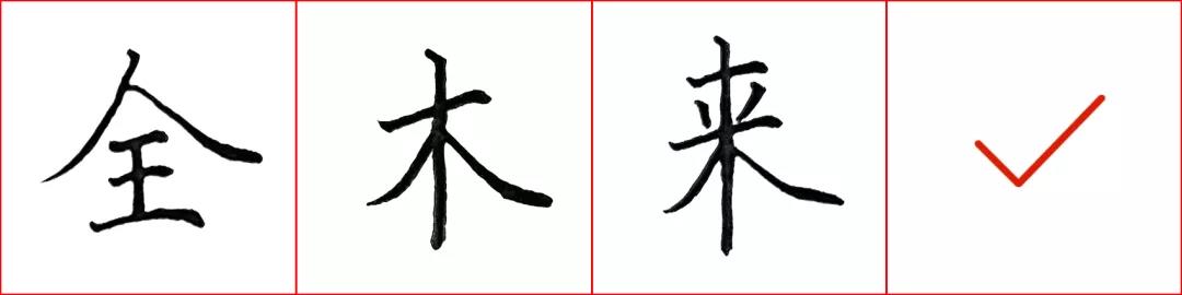 撇捺搭配出现时,90%的情况都要舒展放开,也就是撇捺的长度要长于其它笔画,这样字形开张有活力。初学者不要“胆小”,大胆写把撇捺放开,没什么可怕的。