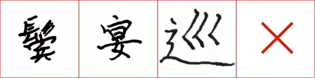 过犹不及,两种极端化处理都是不好的。要做到笔画均匀分布,空白大致相等。