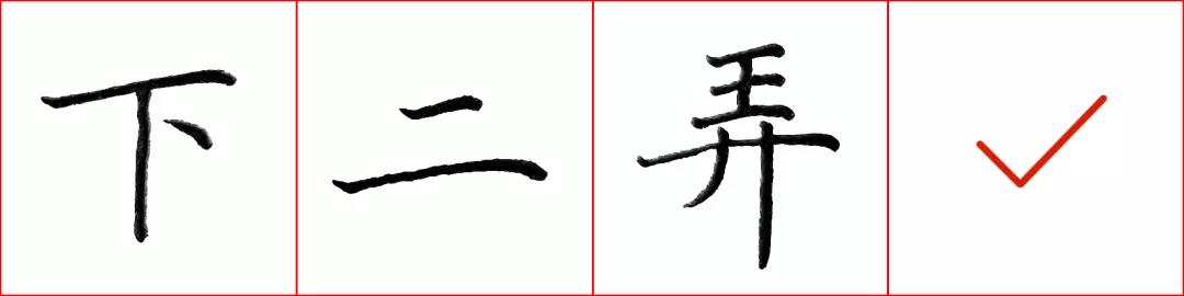 注意横虽然有一定斜度,但很小,要先做到水平,再增加斜度。很多初学者把横写得过于倾斜,甚至所有的横全部倾斜,是控制力太弱的体现。