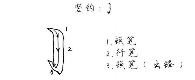 顿笔出锋:到最底下停顿,上勾,勾不可过长。