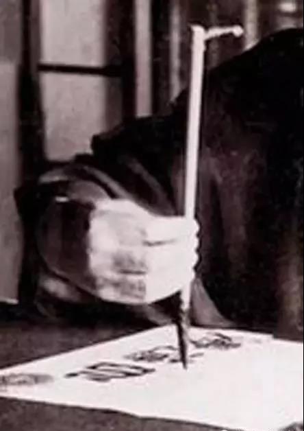 舒同先生是中国书法家协会首任主席,其书法被誉为“舒同体”。从舒同这张照片可知,舒同作书时采用的是三指双钩之法。