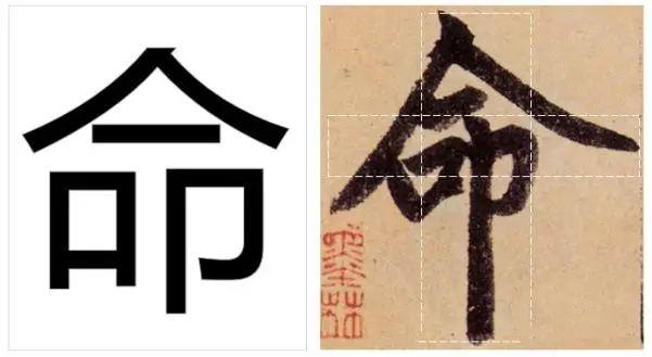 我们看初学者写"命"字,最常犯的错误就是太方正,如电脑字一样。
