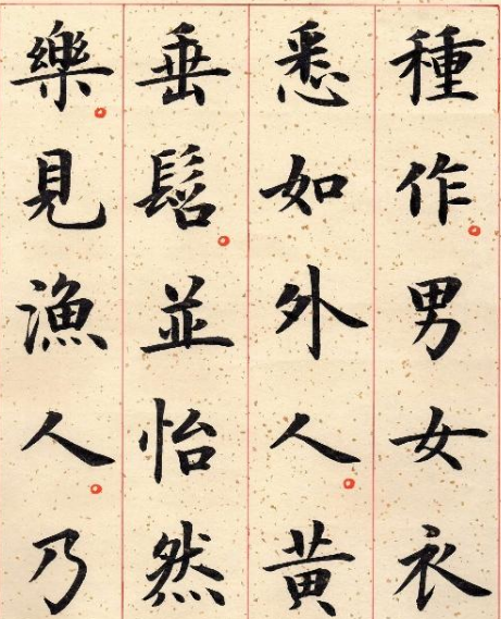 所谓鲜,是指尽量用新研的墨,如系残墨,应冲洗一净;所写的笔画,不宜加改,一改,就影响了字原有的自然鲜度。