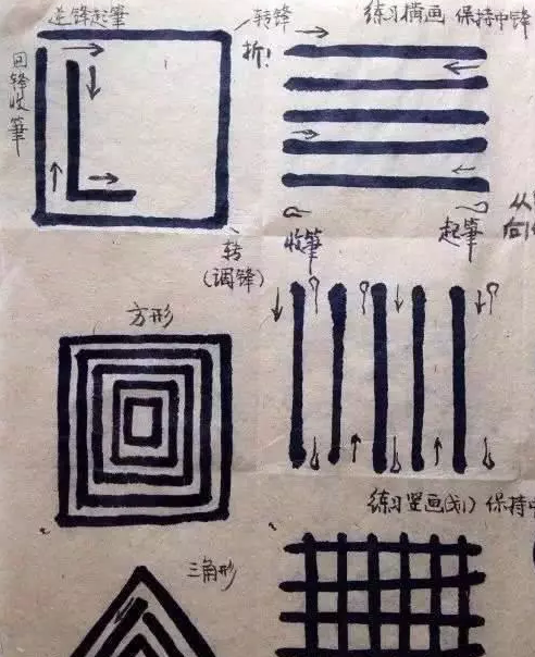 以前学书法没这么复杂,就像我开头说的那样,老师扔一张毛边纸,告诉我画个什么样的图形,画完给他看,画像了他就一句话:就这样练;画不像,他才手把手教你再画一遍。这样学了很多年,才知道书法有个“逆锋起笔”的名词。