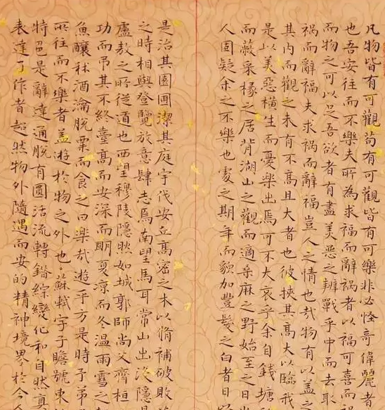 因为小楷每字亦只有二三分见方,笔势有限,另一方面,小楷沉着端重,用笔精致细到,要悬肘作小楷,对于初学者来说,实在很难于控制和驾驭,故初学小楷,不宜高悬手腕,晋以前人作小楷时常席地而坐,无所凭藉,悬腕书之,笔力十分可观。