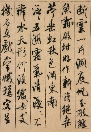 在《蜀素帖》中,就其内容而言,诗歌语言的运用体现着米芾的古雅情趣。叠词是古体诗歌语言运用的一个特征,而《蜀素帖》中8首诗歌共运用叠词17 处,这说明米芾有着较为深厚的文学功底,并且习惯学古、用古。