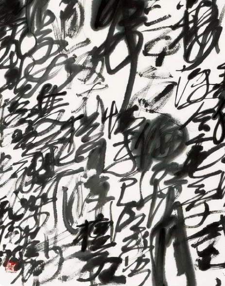 正如有网友所言:“王冬龄的乱书看似与书法有关系,实则与书法毫无关联,表现出来的效果就是一种静虚图像,可以看着抽象画,最多也只是借用了书法的元素。”