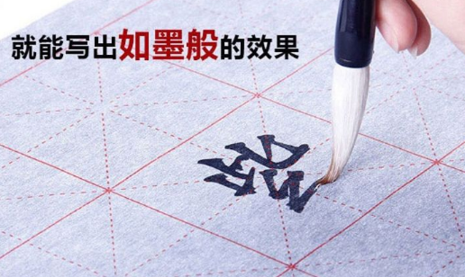 水写布虽然不是宣纸,但是却有宣纸的书写效果,只要用新的干净的毛笔沾上适量的清水,在水写布上临书试画,就能写出生宣和熟宣纸上着墨后那种乌黑的书画效果。