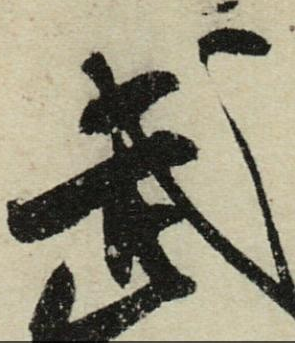 第一个字,“武”来自宋代书法家米芾的《李太师帖》,此贴现在藏于日本东京国立博物馆,是米芾行书的代表作。这个武字,重心左重右轻,好像一个人左脚踏在地上,右脚抬起或者举起一个兵器。这个字也通过笔画的粗细表现了一种强烈对比,非常具有张力。给人一种动态的,力量的感觉。
