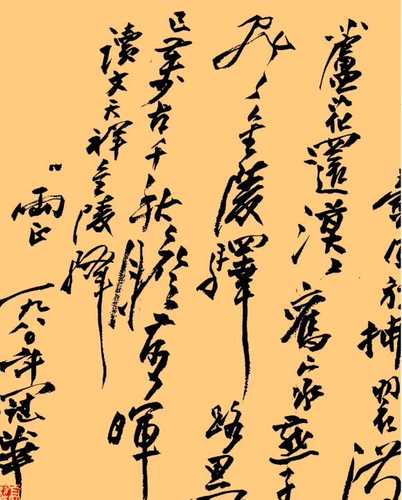 草书特点:结字形似"真",省笔保神全;部首相借代,一符多部现;一笔成字多,字间常牵连;与"真"用笔殊,提按巧"使转";布白讲疏密,气脉通而贯;用墨求变化,润笔写到干净。草书高妙处,抒情生喜怨。