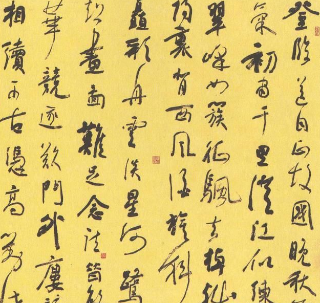 上图中,若论书法功底和技巧变化而言,是非常到位的,无论是收放疏密,还是浓淡枯湿,他们都做的非常到位,并且笔法娴熟,不失为上乘之作。但是却又明显的“设计”嫌疑,似乎这是一场设计好的游戏,每一个字都是设计中的棋子,精雕细琢。