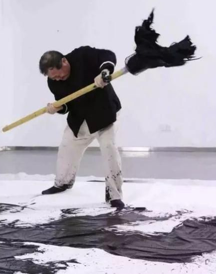 曾翔在当今书法界可谓真是一朵奇葩。近期,曾翔的书写方式非常奇特,我们看下图中,他拿着一根不知是木棍还是竹竿,竹竿一头绑着一撮头发(又或是其他毛发),谈笑风生,悠闲走动,右手时不时、随机的拿着他自制的得意“毛笔”书写着常人难以看懂的“图案”。更多书法内容尽在新翰丹书法!