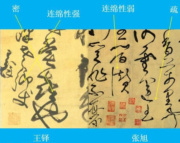 后人将张旭与怀素的狂草赞誉为“颠张醉素”,其狂草的突出贡献就在于他们把空间节奏与时间节奏的变化发挥到极致,且不失和谐与统一。