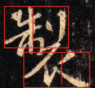 我们再来看这个“制”字,这个字相比于上面的“盖”字,错位的更加离谱,上下两部分的中线离得更远,而王羲之仅靠一笔的搭接将这个字上下部分联为整体,其造势之精巧,后世之人难以企及。