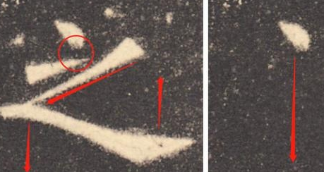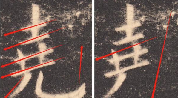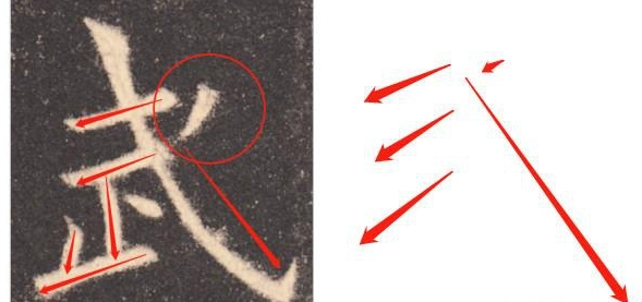 欧阳询用笔之险随处可见,几乎在每一个字当中都能见到。这种笔画的险绝在于用笔之巧,变化之巧,方位之巧。