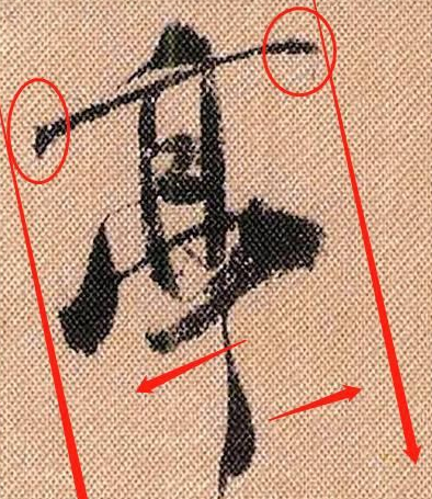 我们再看这两个字的字势,字势整体是倾斜的,为什么要把字写的歪歪扭扭呢?这就是我们之前讲过的“以斜取正”?很多人不明白,把字写得端端正正的不好么?干嘛写得歪歪扭扭的呢?
