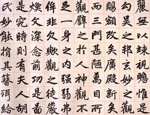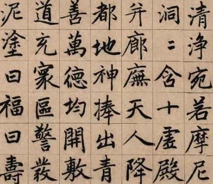 第三,笔圆架方,流动带行。书写赵体时,点画需圆润华滋,但结构布白却要十分注意方正谨严,横直相安、撇捺舒展、重点安稳。只有这样,才能掌握赵体的特点。另外,他书写楷书时略掺用行书的笔法,使字字流美动人,也是赵体的特点之一。