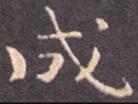 这是欧阳询的《九成宫醴泉铭》中的成字,作为主笔的戈钩位置至关重要。如何确定起笔位置(A点),常用的方法是把这个字放进米字格或者九宫格,然后尽量找到A点的坐标,最后在格子里写准对应位置。