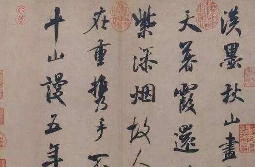 《淡墨秋山诗帖》是北宋著名书法家米芾的行书作品,纸本,纵29.1cm,横31.9cm。