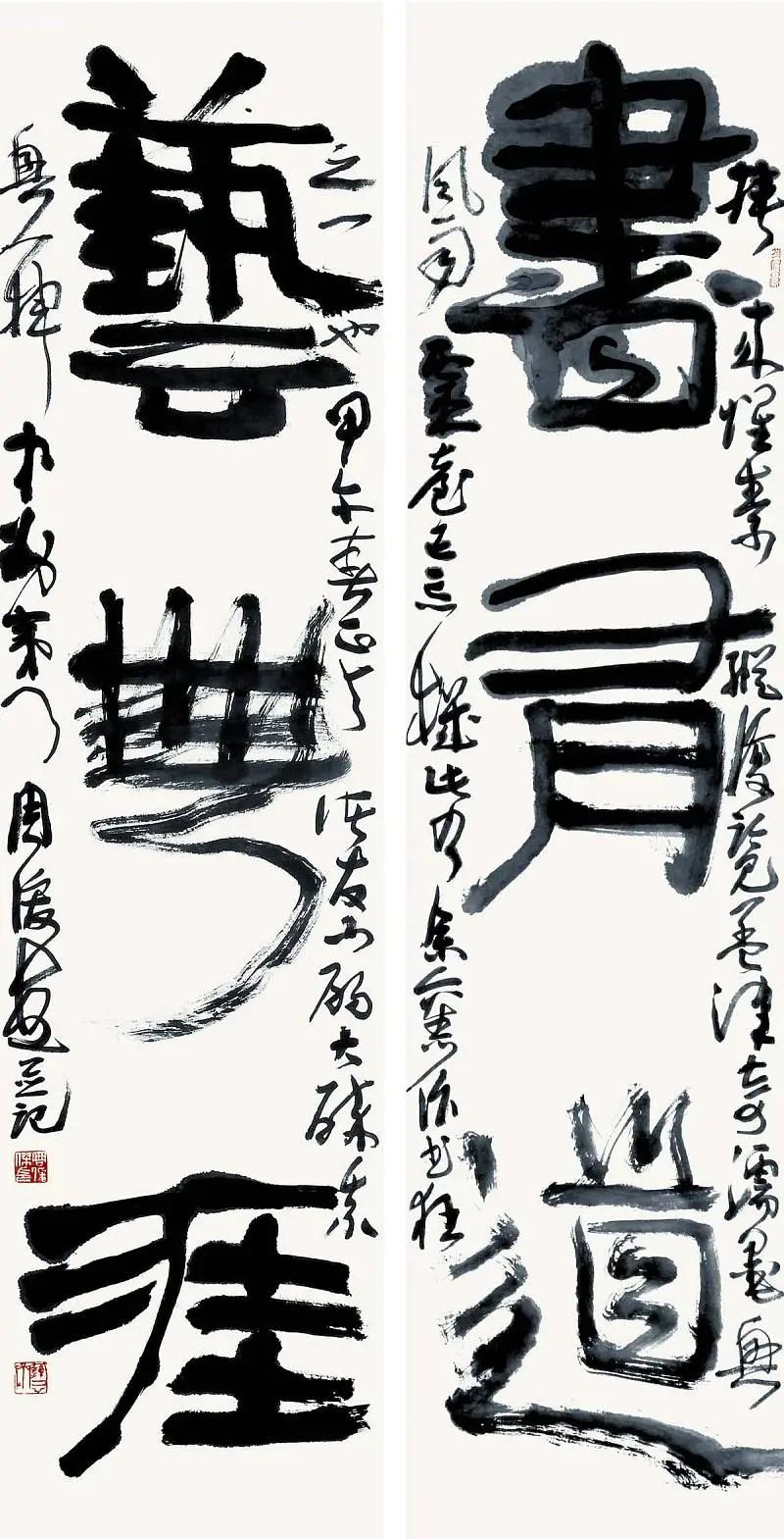 就书法艺术来说,当代书法家们也不是空穴来风一下子就走到了艺术性道路上的,上个世纪八、九十年代,许多人都在写传统书法,那是因为书法热潮刚刚起来,但在这个热潮之后,又有一些书法先行者却在探索由传统、书意、书艺的书法内涵,例如,以前古人所说的“点画之间皆有意”,就证明了古人在写字过程中,也在追求书写的意味与趣味,而我们今人,在物质极大丰富的情况下,能不能在大面积的宣纸上寻求书法的趣味呢?这就给那些先行者创造了无限的可能。
