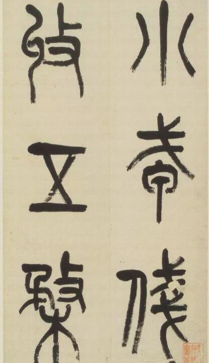 吴昌硕的大篆石鼓文,本来就来自于金石,所以,他的书法多了很多刚健雄浑的味道。
