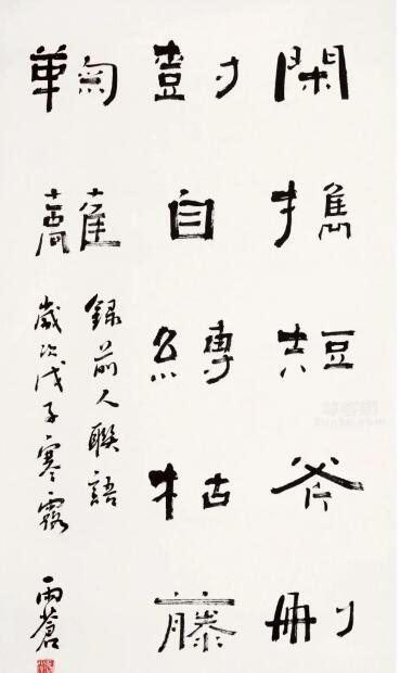 笔画少、结构疏的字,要以丰肥制稀疏,宜把笔画写的粗壮丰满开张,字形有饱健有力宽宏之感,间架端正,遒劲自然为上。