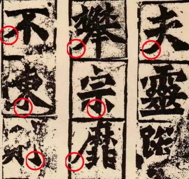 一、方笔并不全都是棱角分明,尖锐锋利,许多地方因为各种原因而变得较“钝”,给人以朴厚凝重之感,这在钩、撇、捺等笔画的出锋处尤其明显,如“夫”、“不”、“靡”、“东”、“宗”等字都很清楚地体现了这一特点,在临帖时要注意不要刻意去强调锋利的感觉。