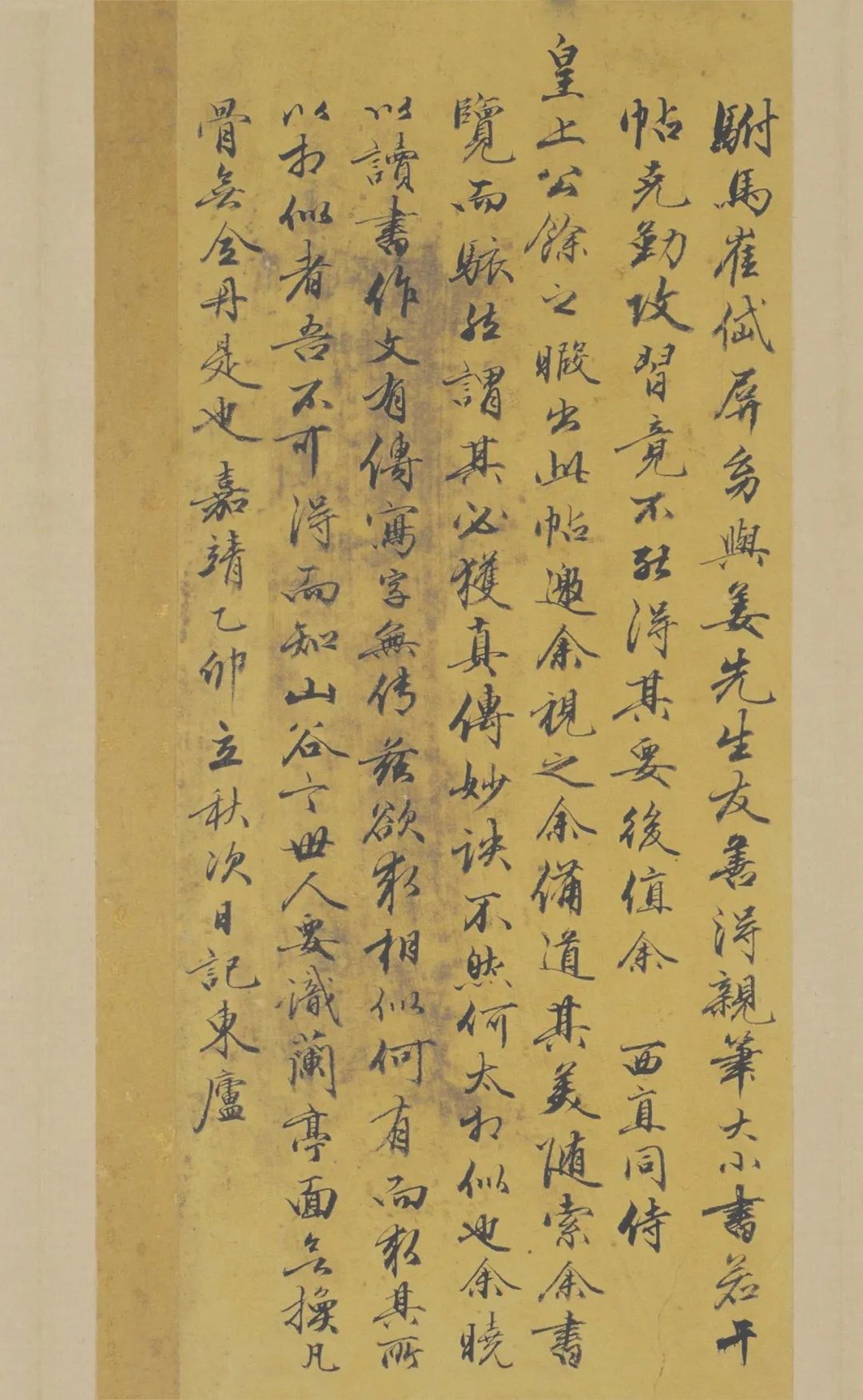 当时,凡内廷制诰、宫殿碑额,大都出于他的手笔。人皆称其书曰“姜字”,在社会上声誉很高,“人得篇纸,争以为法”。明天一阁主人范钦,在《评书·弇州山人稿》中曾谓:“成、弘以来,尚正书,姜立纲端正、凝重,世顾好之,迭明宗习”。