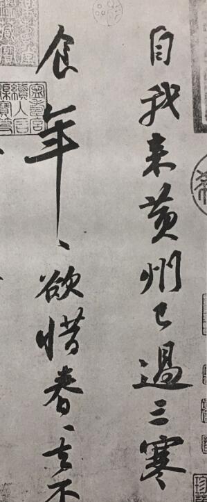 苏轼追求“外枯而中膏,似澹而实美”,即平淡自然中蕴含着丰富而深刻的内涵。他在《书唐氏六家书后》中说:“永禅师书,骨气沉稳,体并众妙,精能之至,反造疏淡。”可以看出他对智永书法推崇。苏轼在《书唐氏六家书后》中还赞誉颜真卿:“颜鲁公书,雄秀独出,一变古法,如杜子美诗。”苏轼把颜真卿的书法与诗圣杜甫的诗相提并论,可见他十分崇拜颜真卿的变法精神,他还认为颜真卿的“变古法”和杨凝式的书法“新意”,皆体现了人格精神和审美情趣。