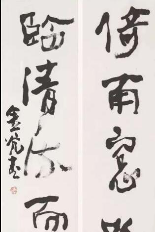 吕金光的书法自清人开始,多以倪元璐风格示人,后学王铎与颜真卿,并融合了自己对书法艺术性的理解,自成一体。有人这样评价吕金光书法:“凌云健笔意纵横”的气势,达到了“元气淋漓障犹湿”的艺术效果。这种评价的确是很高的,一方面说明吕金光书法的在技法上已经不是问题了,另一方面说明他的书法所渗透的是一种“元气”,是触及到了书法的根本之上了。