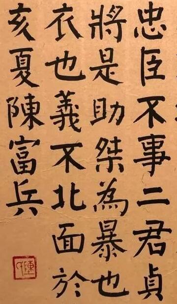 不过,国展上的颜体楷书,和保安大爷的颜体楷书有很大的不同——保安大爷的颜体楷书,更忠实于原帖风格,国展上的颜体楷书,则多是经过加工改造的风格。