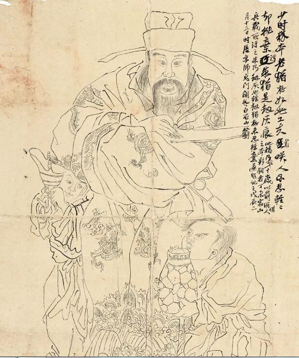 这幅《人物稿》是迄今为止保存下来的最早的一件齐白石人物画稿之一,是他早年学习人物画,为乡邻们绘制雷公像、门神像的重要依据,也是了解齐白石的早期艺术风格提供重要佐证。年过六十之后,齐白石在画稿上重新题跋,那句著名的“少时粉本老犹存,如此工夫觉笑人”就是来源于此。