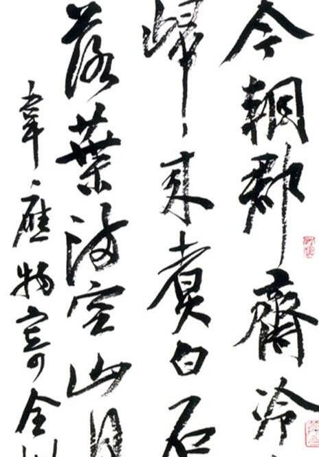 4“书法之所以成为艺术,节奏感是其标志。”节奏感如何落实到具体的书写过程中去呢?曹宝麟说得很具体,他解释说:“落实的具体的时候,应该注意,直笔主要是提和按,相对比较简单,自然应该快一些。而在写转折或者曲线的时候,因为有方向的变化,就应该把速度降下来,这样才能书写到位,不失笔法。”当然了,这里说的节奏感,还是要建立在熟练度之上的,没有这一点作为保证,自然做不到随心所欲,也很难体会到节奏感的重要性。