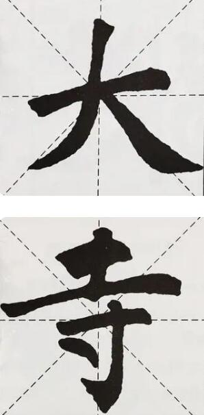 欧体,笔画结体,法度森严。欧阳询在其《八诀》中提出:“点如高峰之坠石,新钩似长空之初月。横若千里之阵云,竖如万岁之枯藤。戈钩劲松倒折,落挂石崖。横弯钩如万钧之弩发。撇如利剑截断犀象之角牙。捺笔一波常三过笔。”