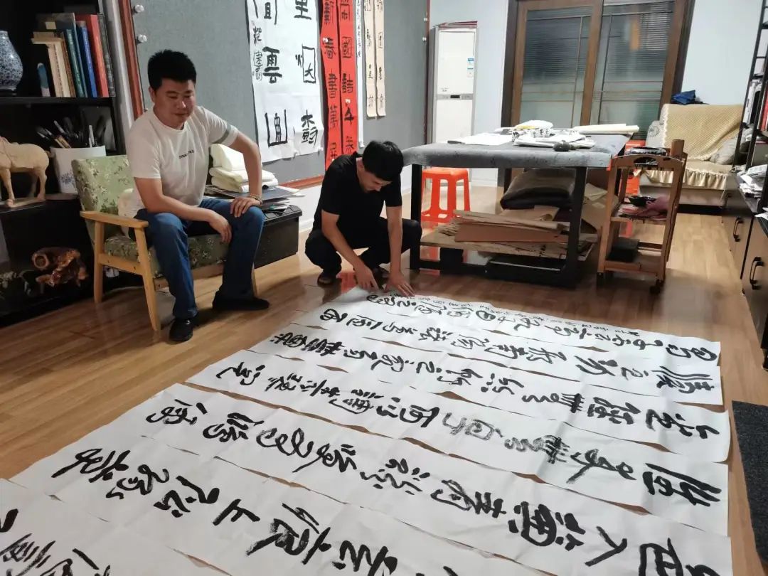 从此以后,范建刚便对书法产生了深厚的学习兴趣,并且把学习书法的目光放在了两汉书法之上。他一遍遍地临摹,也有了一次次的新感受。通过与书友交流学习和查阅各种资料,两汉时期,先人们为我们遗留下来了很多的珍贵的书法史料,但范建刚却认为,最成熟的、最美的都不是他学习的对象,例如他不喜欢学习《曹全碑》、《乙瑛碑》等,他说这些字因为太美了,学习起来太容易了,于是乎,他就下功夫找到两汉期间最“丑”的书法来学习。