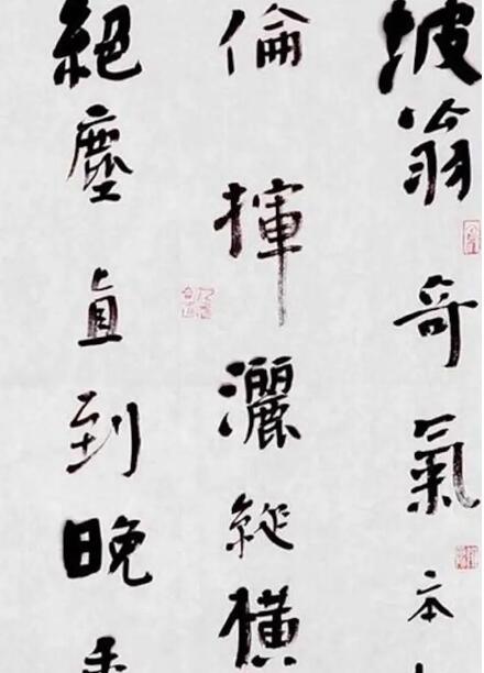 第三,只求神似,不顾形似。如果稍微留心一下,在许多书法展览上的作品,虽然作者是学习某个人的,但他所创作的作品与某古人的字形相差甚远,而是看起来像,比较起来并不像,这就是一些评委常说的,既要像,又要不像,其实这是要求必须有古人的“基因”,但不能完全相同,做到了这一点就会成功。但这几年的书法展作品,又增加了一个考察要素,这就是只学一个古人肯定不能过头,一幅作品中至少要能看出作者融合了两位以上的古人风格。