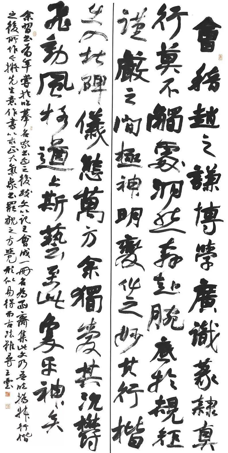 从王玺以前的作品可以看出,他在传统上下过大工夫,真草隶篆都写得很有法度。尤其是草书取法王铎、祝允明,写得潇洒、自由有相当高的水平。但是这些看上去很生动的作品,却依然充斥着燥气,没有写出帖派书法高水平应该有的书卷气,不能不说是个遗憾。