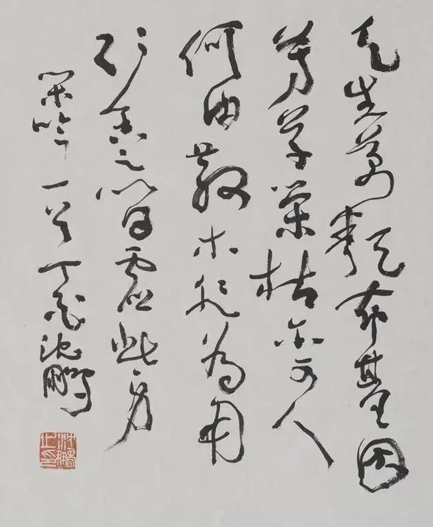 在当代书坛背叛传统搞创新的大背景下,能写出这样形神都有一定高度的草书并不多见,就是以草书出名、大讲创新的沈鹏,也没有写到这个境界。他的字偶然有神采,多是年轻精力旺盛时所作,大部分字线条还没有出现质感,神采就更谈不上了。明代的草书大家祝允明早就说过:有功无性,神采不生;有性无功,神采不实。