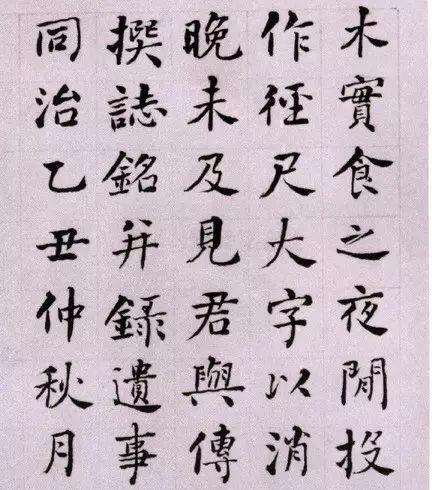 《邓石如墓志铭》书于同治四年(1865)。纸本墨迹楷书。七开,每开纵30.6厘米,横30.3厘米,现藏故宫博物院。