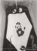 曼·雷的作品更加独特。他所表现的不是具像化的自己,而是采用了立体主义的方式对自己做了拼贴,所使用的拼贴内容与人本身的五官并没有直接联系。他选择了掌印、门铃、提琴的装饰元素等等,组成了一个类型人脸的形状,并取名《自我像拼贴》。我们知道,曼·雷与毕加索是好朋友,最初采用这种方式创作的是毕加索。曼·雷对于提琴元素的使用,其灵感一定来源于毕加索,只不过他们的表达意图并不相同。毕加索热衷于探索多视点的同时空表现,而在曼·雷的这个作品中,他的表达更加偏重于用它物来表达对于自我的认知。在这种艺术发展与艺术认识的影响下,越来越多的异化的“自画像”开始出现在公众视野中。