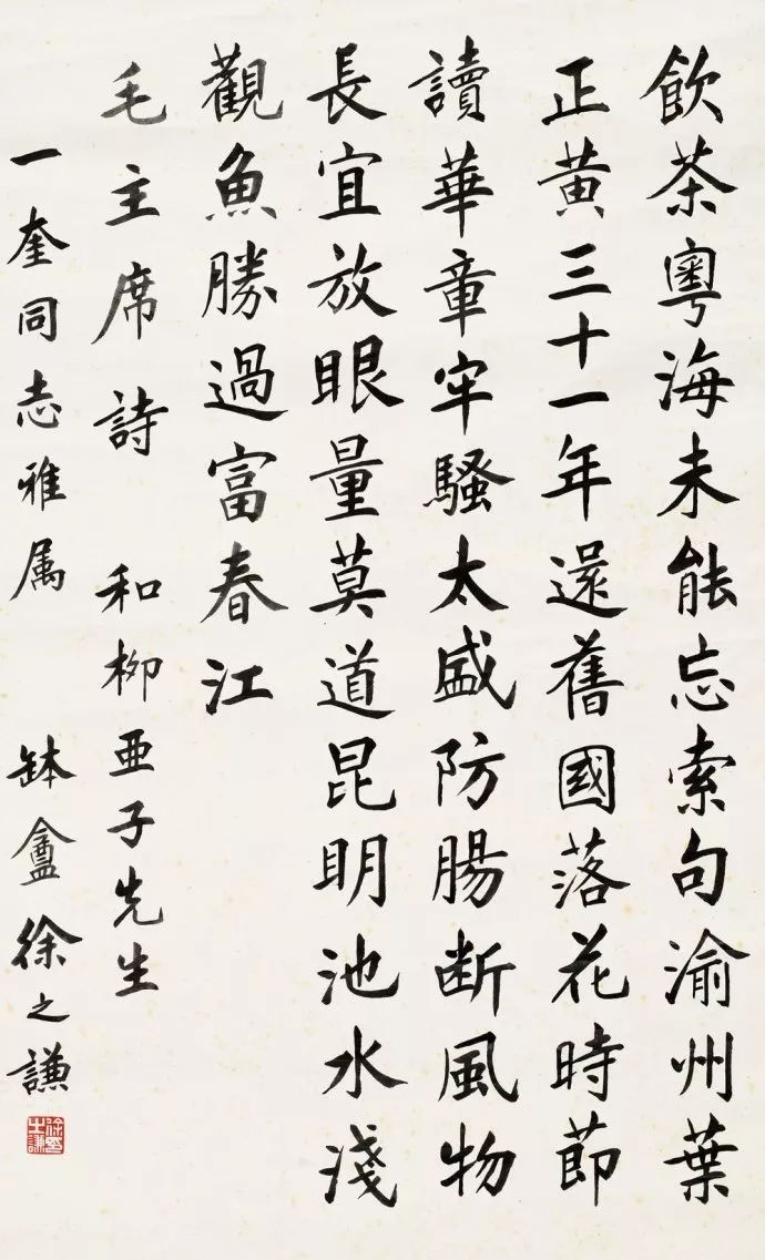 乡居期间,徐之谦在辛勤劳作之余从未放下手中的毛笔和刻刀。1951年4月,文从沈梦了解,北京荣宝斋的经理探听到徐之谦在原籍务农,就再次请他回荣宝斋,安排在编辑科从事书法、篆刻工作。从此,徐之谦英雄有了用武之地。 此后三十多年,徐之谦的书法作品经常参加各种书画展览,并被收入《中国现代书法选》、《全国第一届书法篆刻展览作品集》、《现代书法选》等书册。顺应当时的客观环境要求,徐之谦先后出版了《雷锋日记字帖》(仿九成宫体)、《毛的语录》(柳体字帖)、《毛诗词三十七首》(草书帖)和《毛诗词三十九首》(草书帖)等大半数字帖,影响了一批学字的青年......