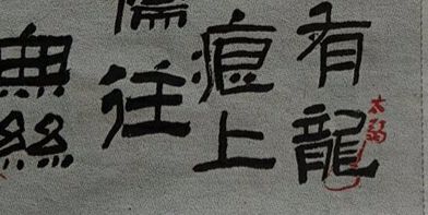 从笔法上看,线质直白、简单、生硬,缺乏应有的技巧;从结字上看,大多字变形失之于法,失之于理,随意变形,任性夸张;从章法上看,此件作品竖有行,横无列,属乱石铺街的章法,用得好可浑然成趣,运用不当就杂乱无章了。