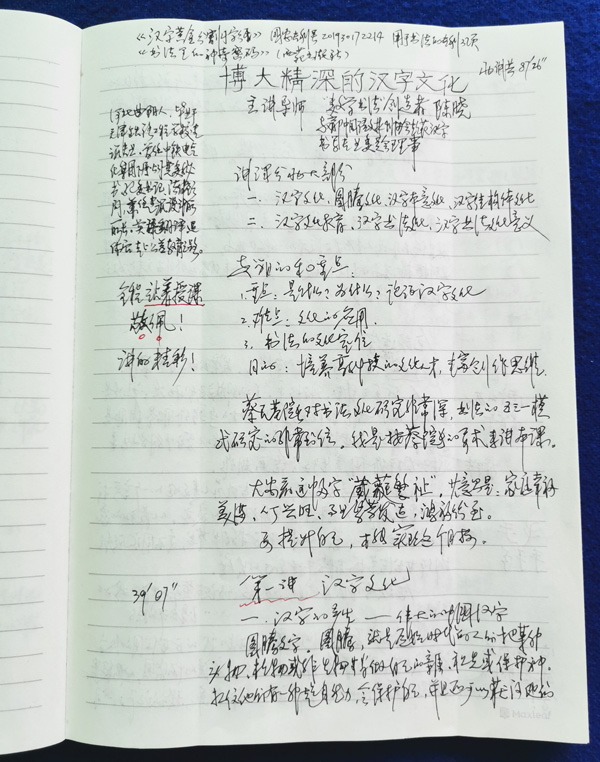 学好线上课程。集中主要精力观看导师讲课视频(有的看了多遍),认真做好听课详细笔记(小16开笔记本纸记了140多面,6万余字),并标记重点疑点,消化难点,记住特点;根据导师授课的提示,查找有关资料,扩充知识面;通过百度搜索,了解各位导师经历、特长、作品等,加深对课程的理解和消化吸收;恢复了写日记的习惯,随时记下学习情况和听课后的思考,记录这次特殊的学习经历和收获体会。