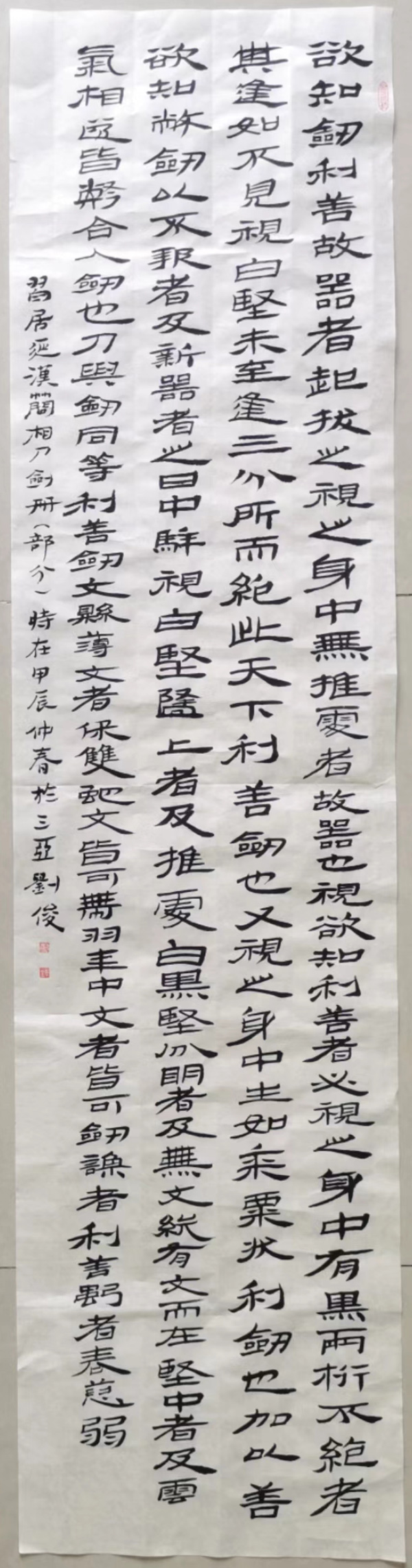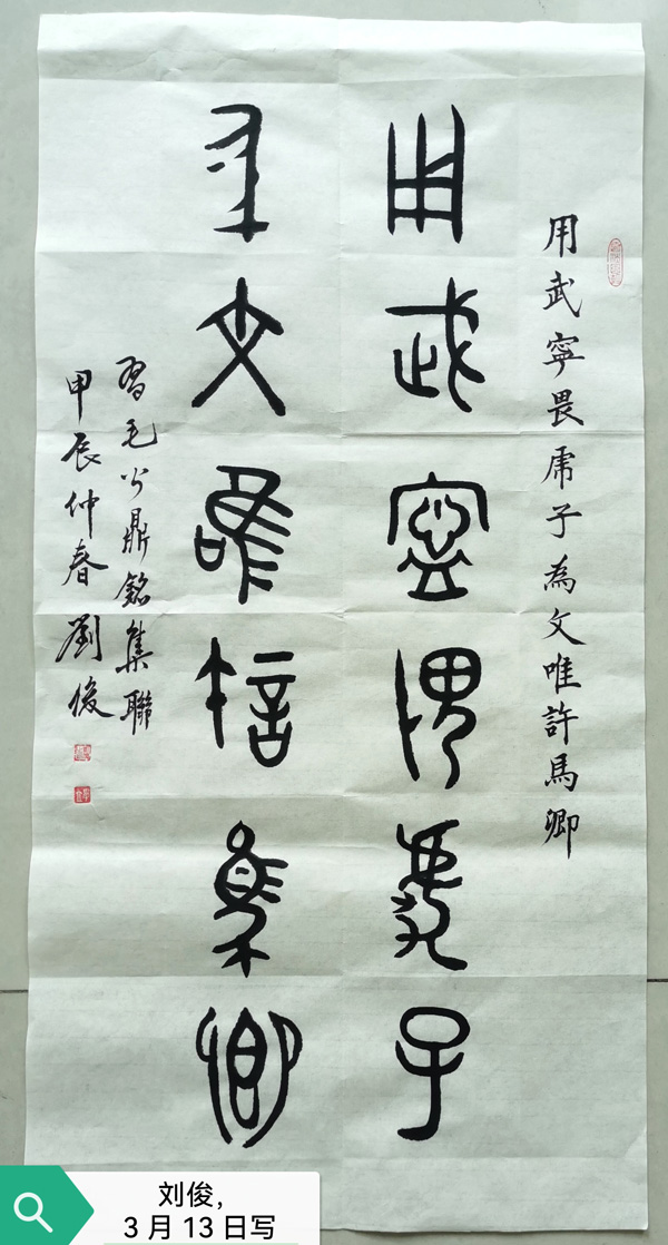 刘俊,男,1964年10月生。理科学士,软件工程硕士。退休军官,曾服役近40年,在原总参某部机关和直属技术部队工作,师级领导,高级工程师。全军优秀指挥军官、**先进工作者、**科普先进个人。曾荣立过二等功、三等功,获得国家、军队级科技进步奖、科普奖10余项。爱好书法,在职时喜欢读书看帖写字,近三年系统学习了楷书,涉猎了行书、隶书。参加本期高研班,希望做书法的明白人,既学到理论知识,又实现“五体”均习,取得明显成绩。
