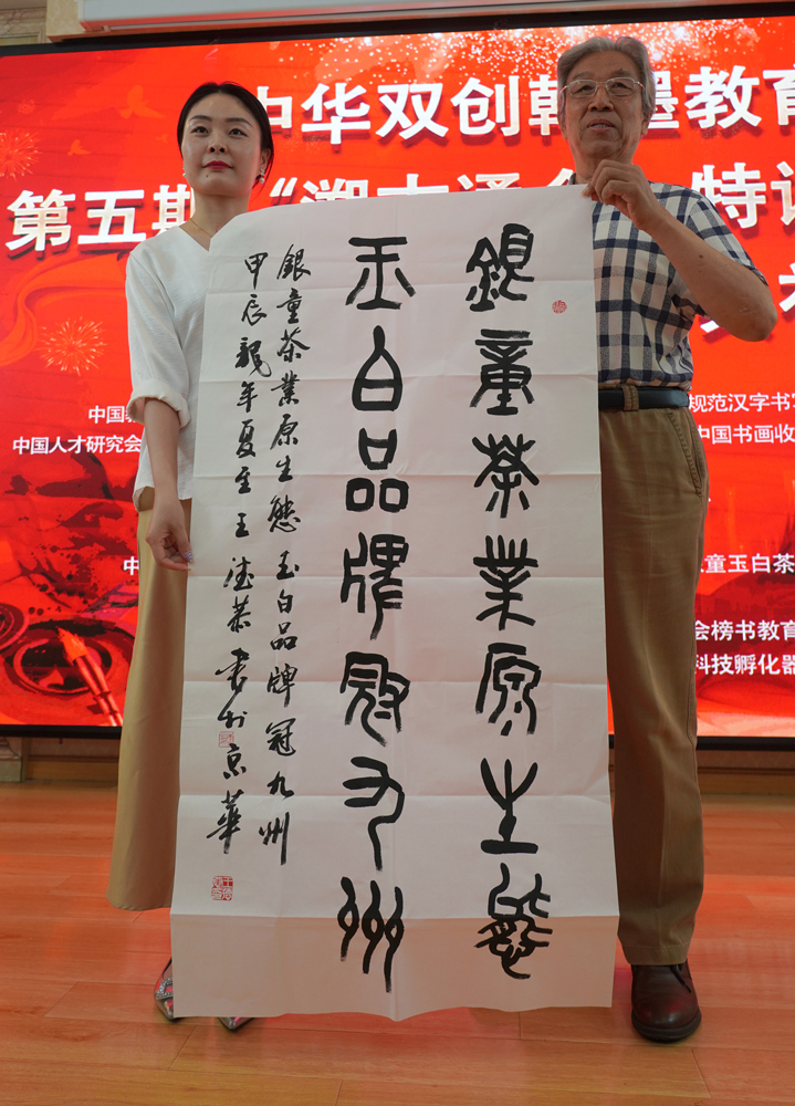 王德恭导师向贵州银童玉白茶业有限公司艺术馆赠送题词
